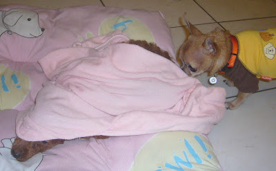 Tiffy, you can't fool the Coco - she found you - now push over and make room for her to get all snuggly and warm with you under that nice blankie.